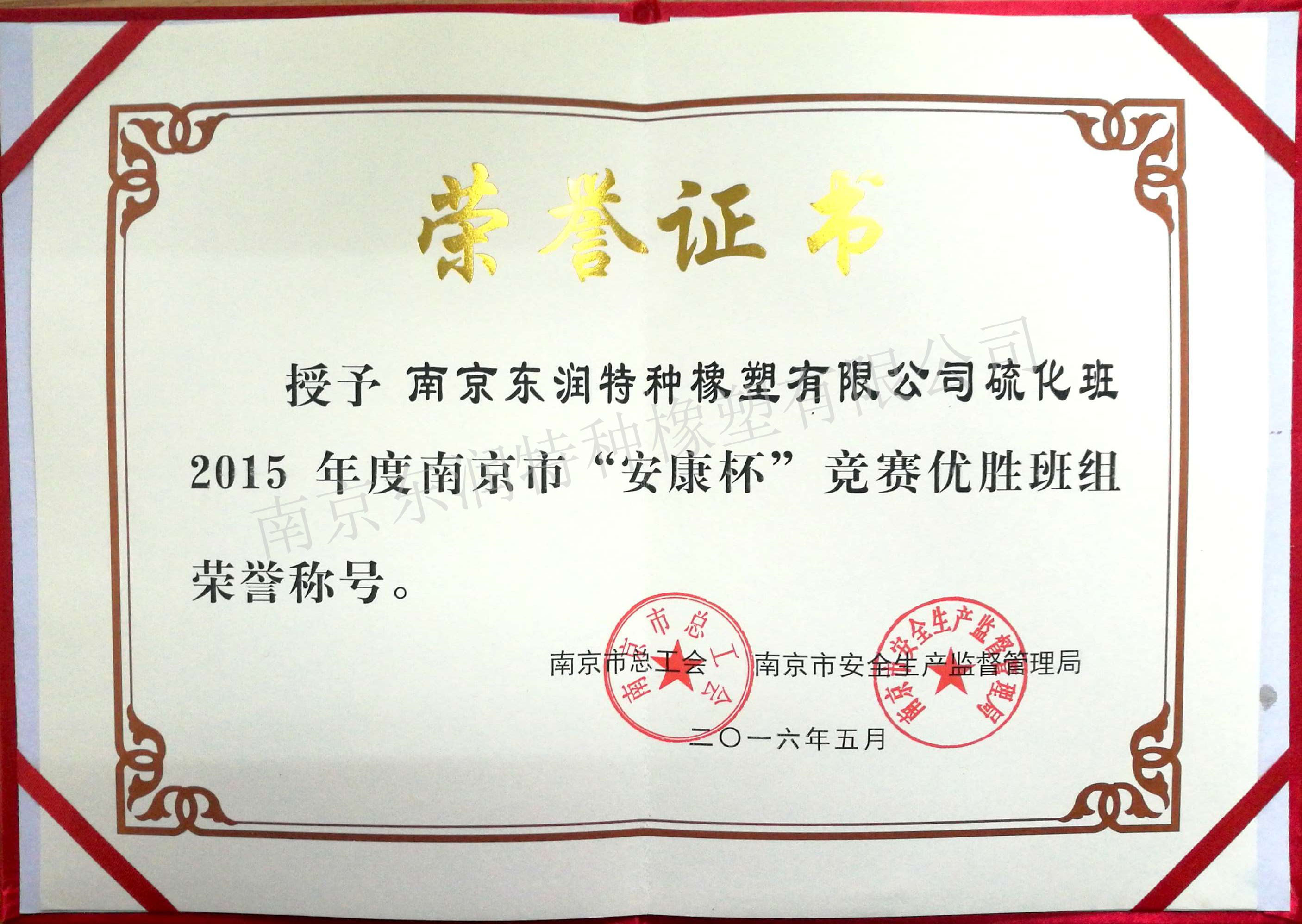 2015年度南京市“安康杯”競賽優(yōu)勝班組榮譽(yù)證書